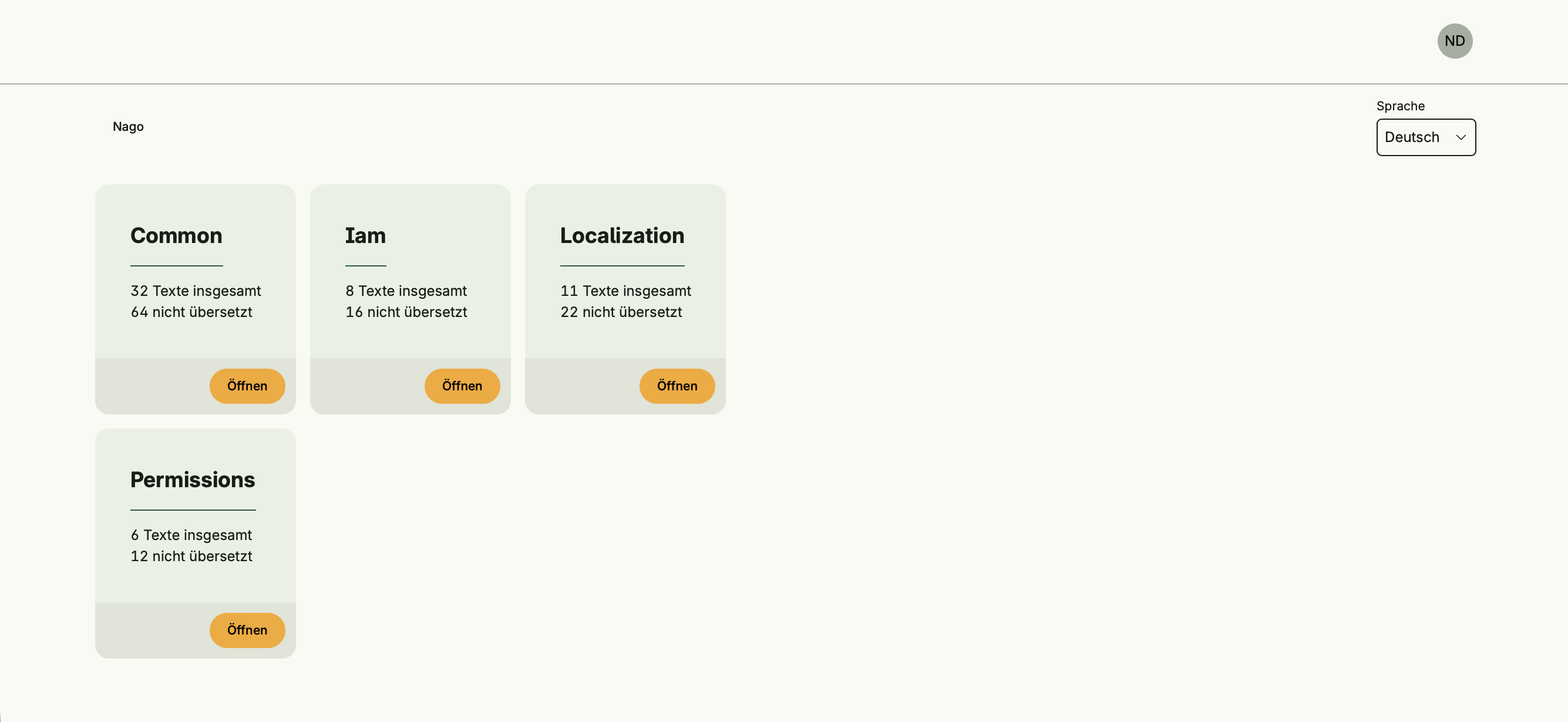 The Localization Management system provides internationalization (i18n) capabilities for Nago-based applications.