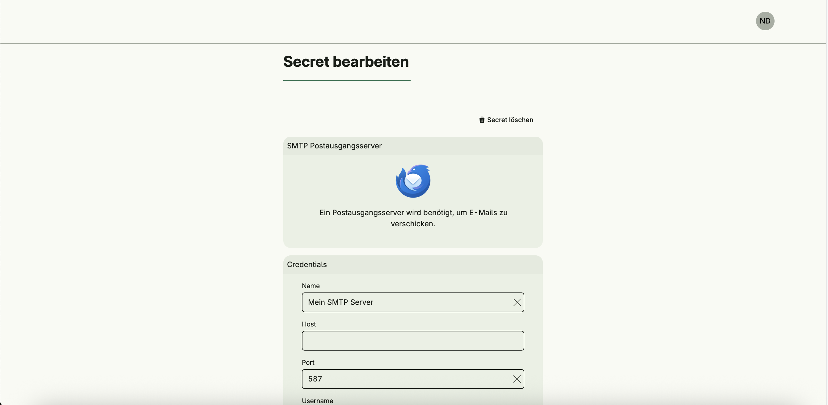 - The SMTP secret type is implemented by default and already available after activating the Secret Management