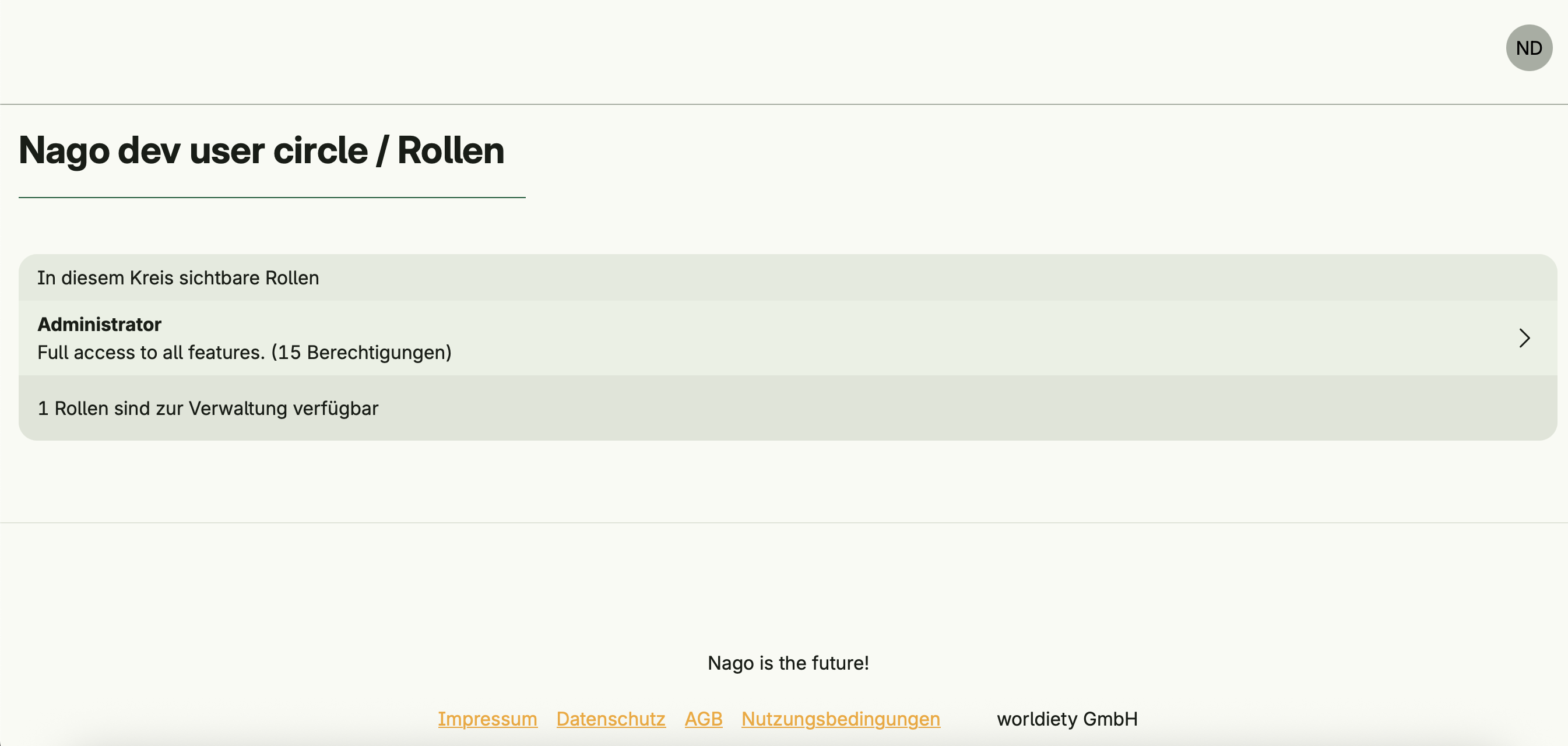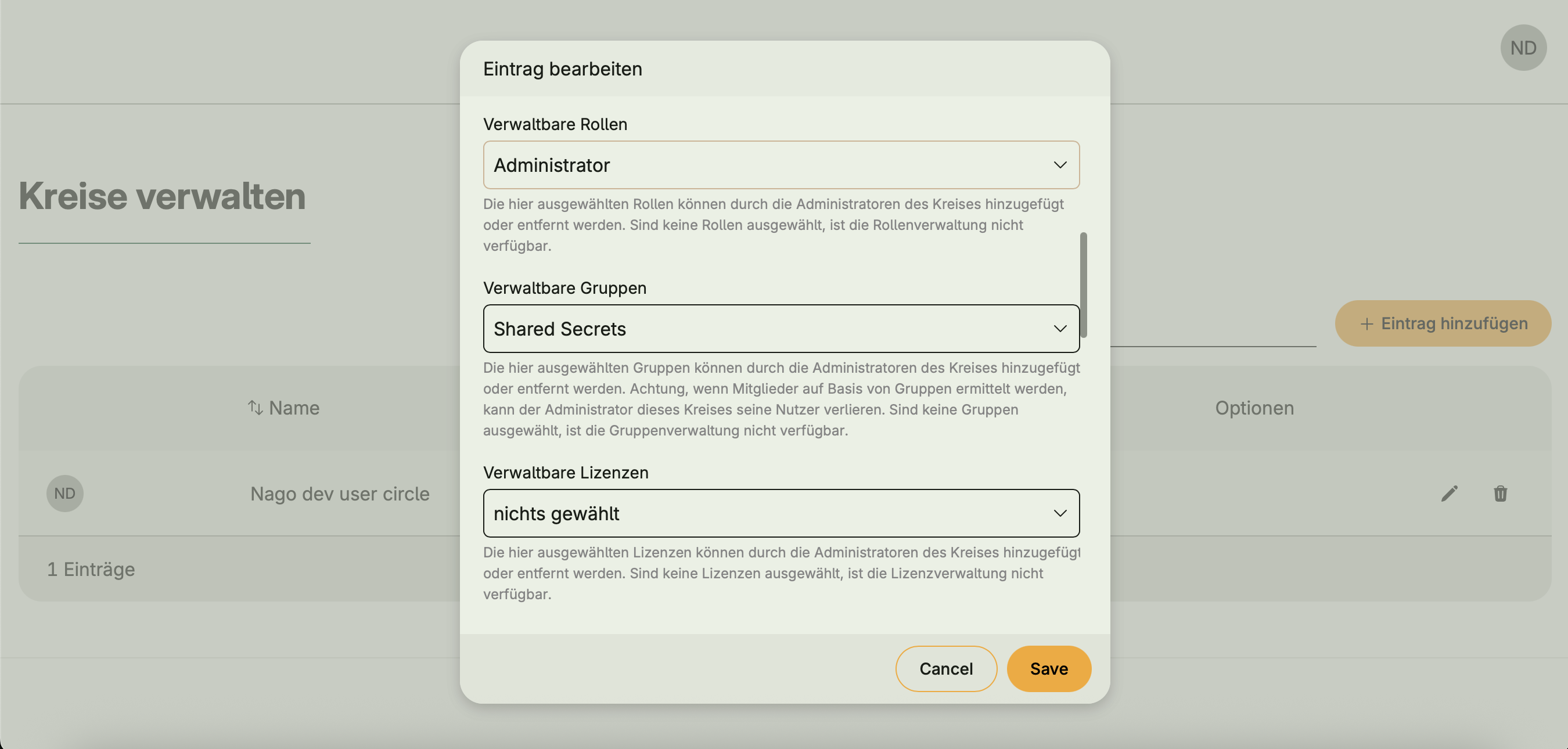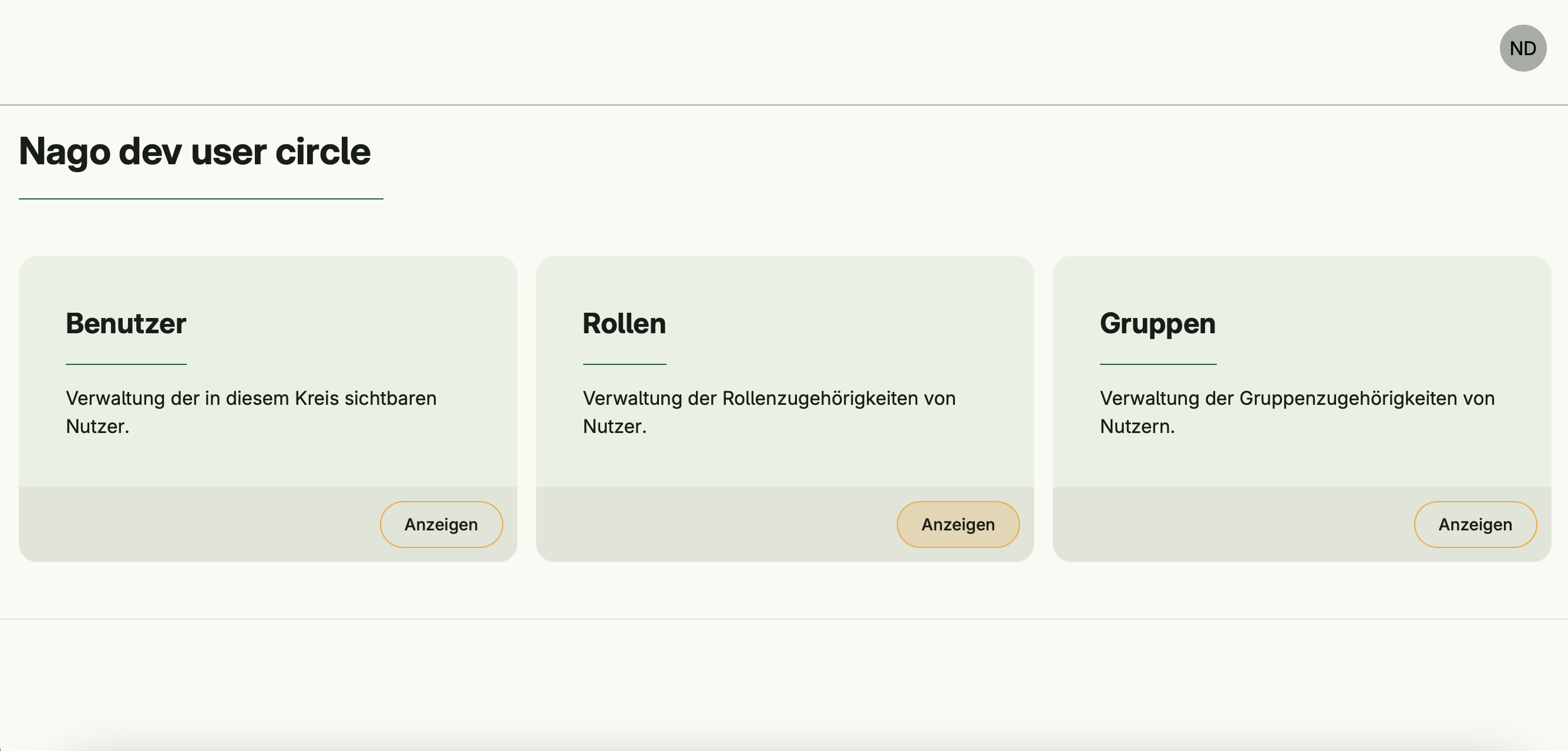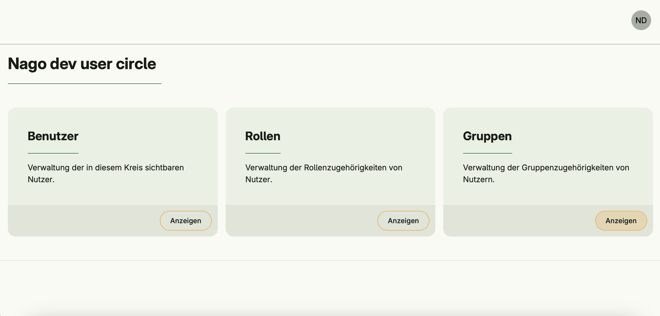 For each created circle, the system automatically provides a dedicated administration section in the Admin Center.