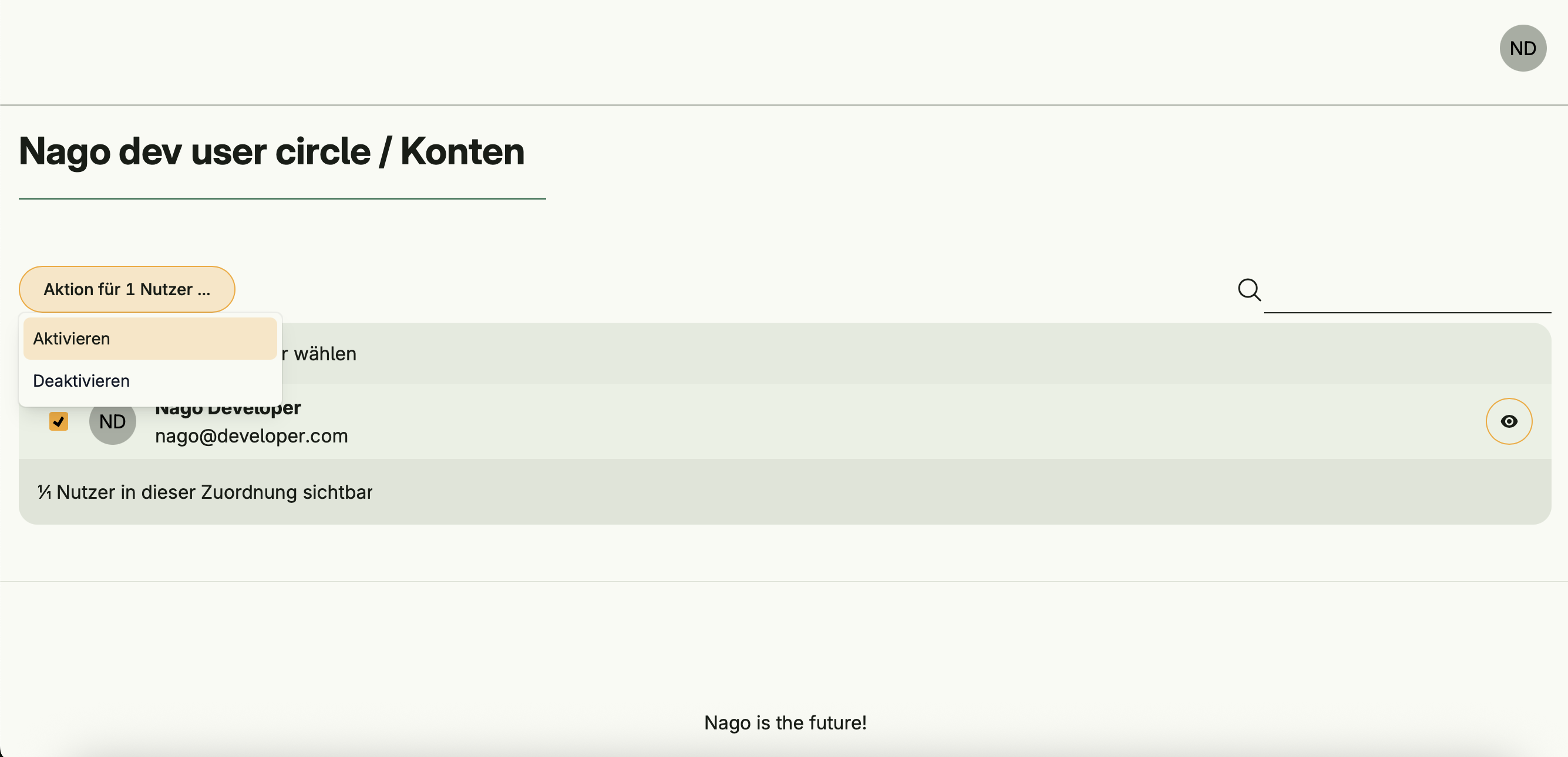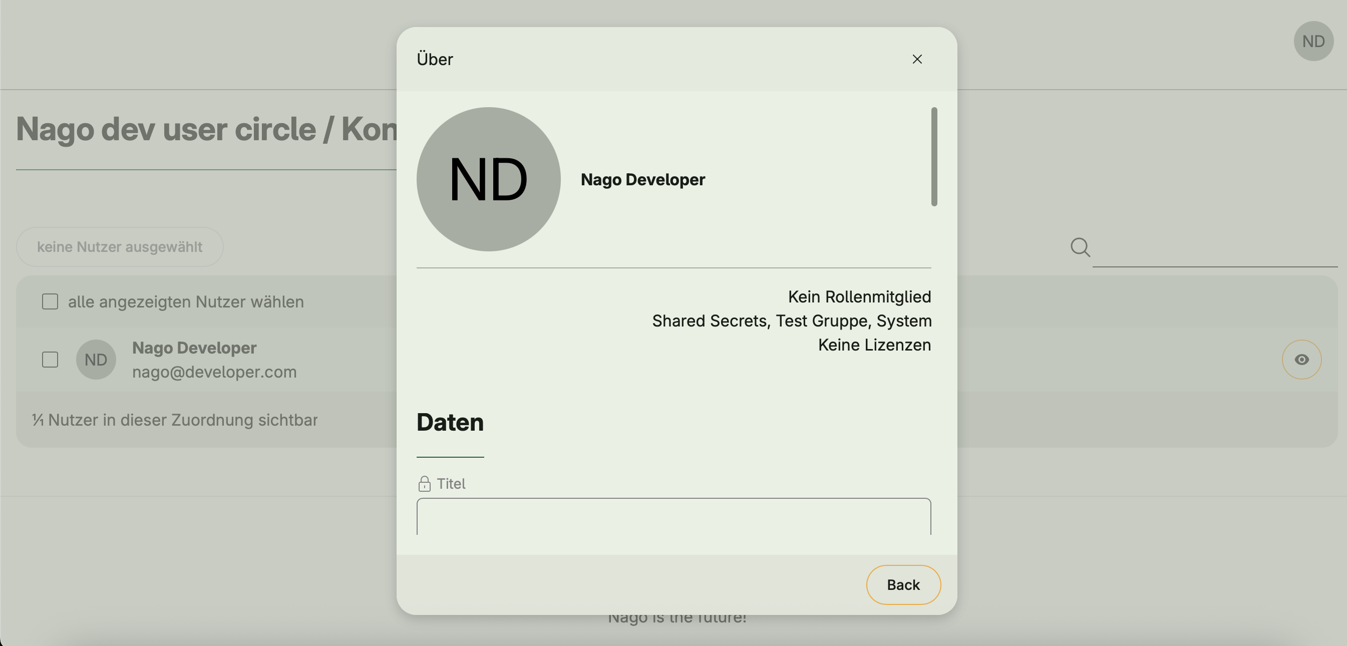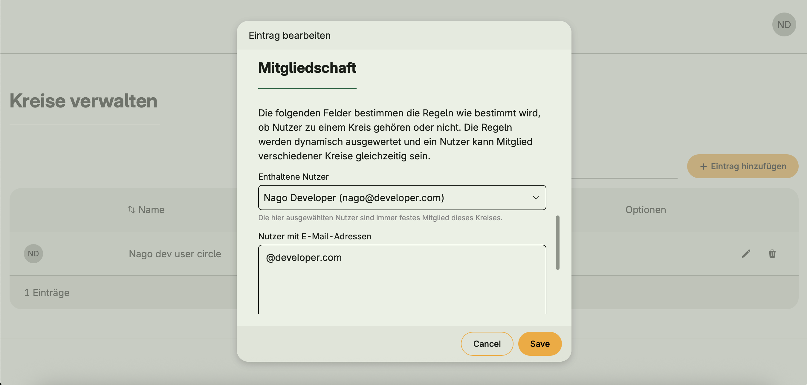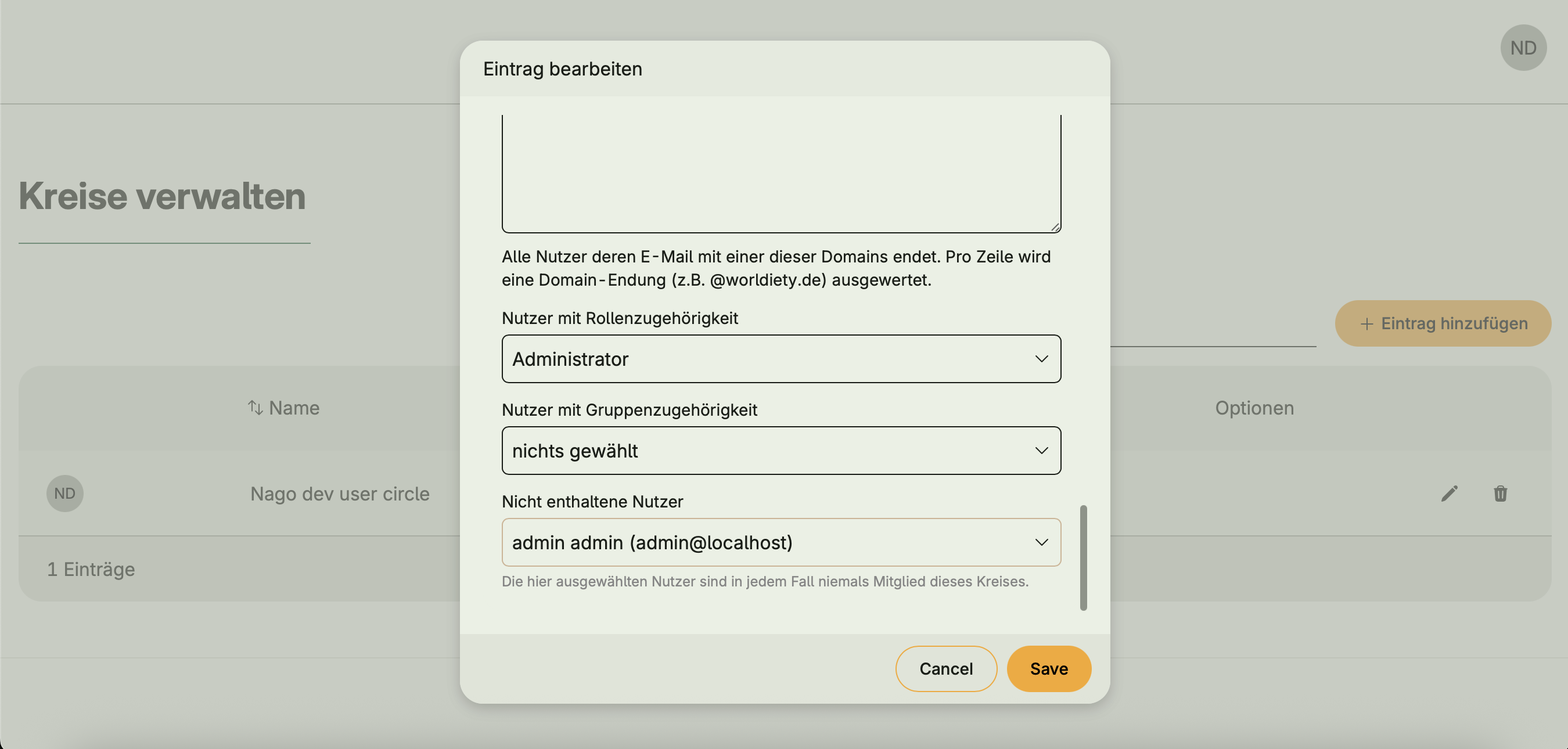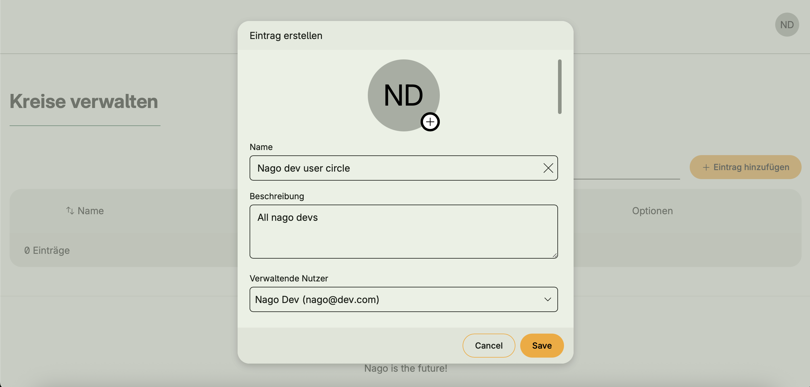 For each created circle, the system automatically provides a dedicated administration section in the Admin Center.